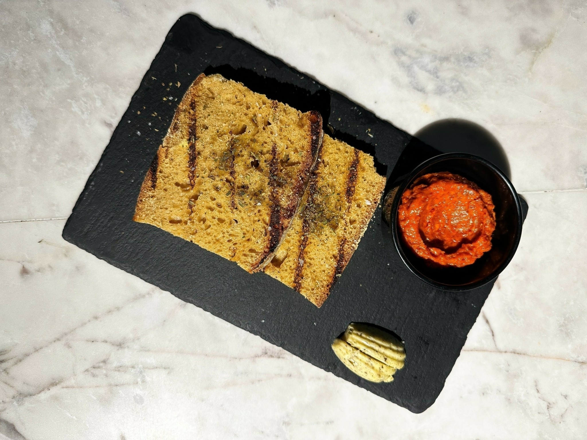 Το δικό μας γεύμα άνοιξε όμορφα το καλωσόρισμα της κουζίνας – ένα πικάντικο μαντλέν με σως από λάδι τσορίθο και καπνιστή μαγιονέζα. Φίλοι του ψωμιού, καλοδεχθήκαμε τις ζεστές και ραντισμένες διακριτικά με λάδι, μυρωδικά και ανθό αλατιού προζυμένιες φέτες, καθώς και το πληθωρικό ντιπ με μουστάρδα από πιπεριά Φλωρίνης, λουκάνικο τσορίθο και παρμεζάνα, αλλά και το βούτυρο με τρούφα που τις συνόδευαν.