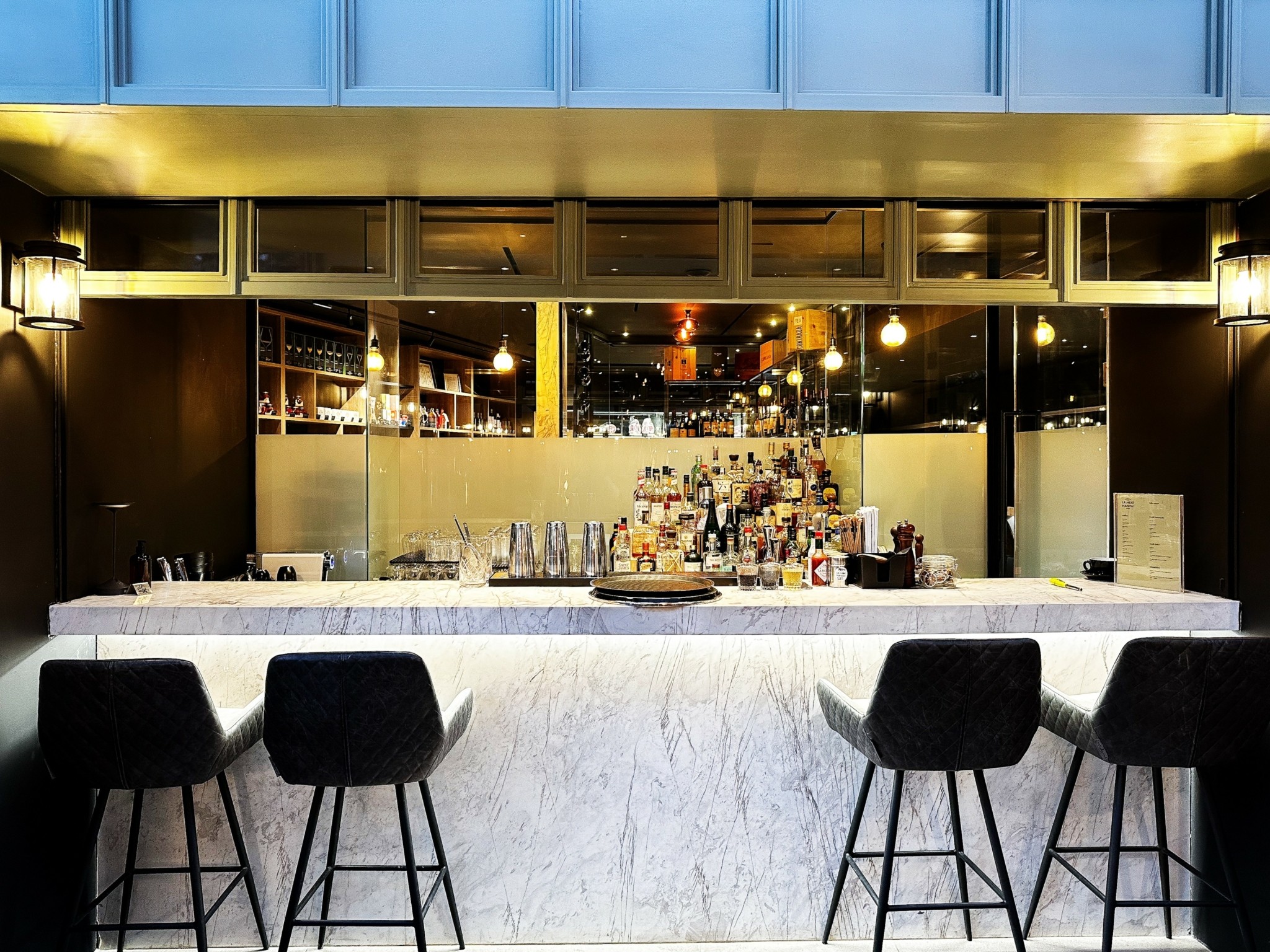 Στην Κηφισιά, εκεί που η Χαριλάου Τρικούπη ενώνεται με την Αλαμάνας, βρίσκεται εδώ και έξι σχεδόν μήνες αυτή η ιδιαίτερη «οικία του κρέατος», που αποτελεί έντεχνο συνδυασμό κορυφαίου κρεοπωλείου, ντελικατέσεν, κάβας και μπαρ-εστιατορίου. Με το άνοιγμα της βαριάς γυάλινης πόρτας γίνεται εύκολα αντιληπτή η κομψότητα του χώρου, ενώ το βλέμμα τραβά η walk-in κάβα με ελληνικές και διεθνείς ετικέτες, ανάμεσά τους Cos d’Estournel, Château Margaux, Château Latour και Château Haut-Brion καθώς και με αξιόλογες σαμπάνιες.