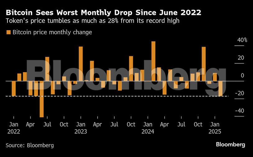 Το bitcoin υποχώρησε περισσότερο από 17% τον Φεβρουάριο, η μεγαλύτερη μηνιαία ποσοστιαία πτώση του από τον Ιούνιο του 2022, ενώ έχασε περισσότερο από το ένα τρίτο της αξίας του από τότε που ξεπέρασε τα 105.000 δολάρια στις αρχές Ιανουαρίου.