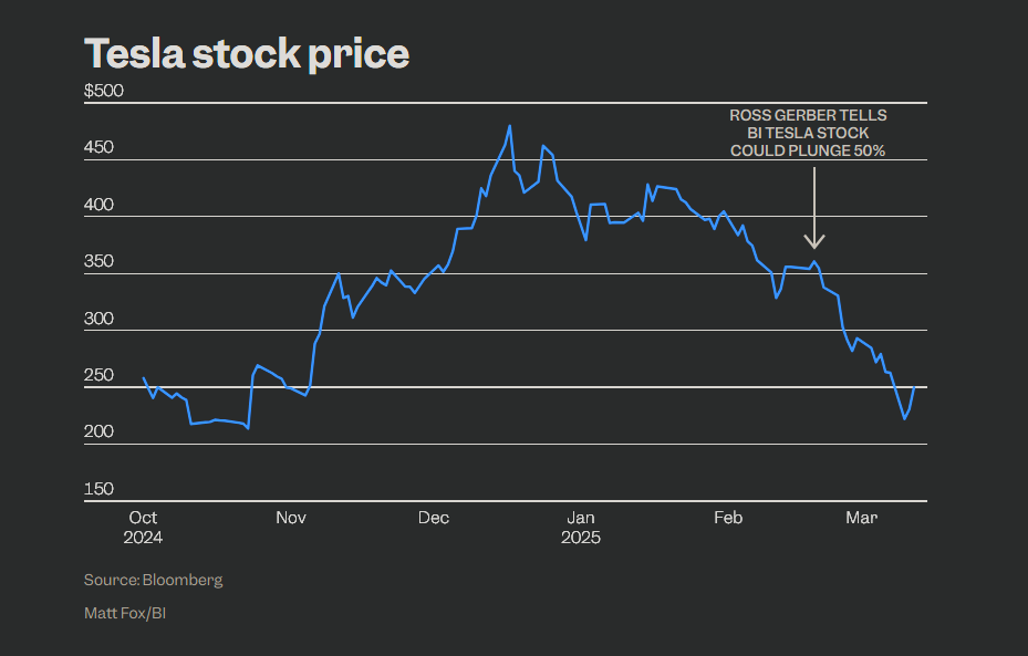Ο Γκέρμπερ – ο οποίος είναι επενδυτής της Tesla εδώ και χρόνια – δήλωσε στο Business Insider τον περασμένο μήνα ότι ανέμενε πτώση της μετοχής έως και 50% φέτος, καθώς ο διευθύνων σύμβουλος Έλον Μασκ επικεντρώθηκε σε άλλες προσπάθειες, συμπεριλαμβανομένων των DOGE, SpaceX, xAI και X.
