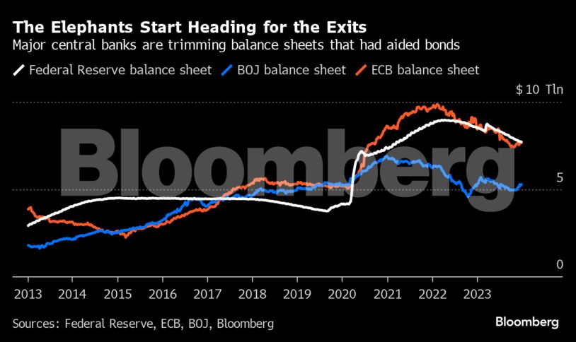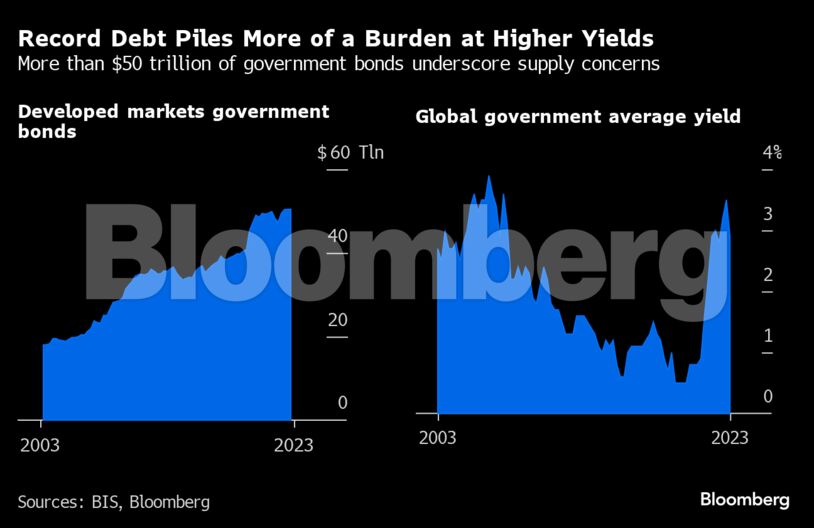 Το ερώτημα πολλών, όμως, είναι το πόσο θα διαρκέσει αυτή η κατάσταση. Τις επόμενες εβδομάδες, οι κυβερνήσεις των ΗΠΑ, του Ηνωμένου Βασιλείου και της Ευρωζώνης θα αρχίσουν να κατακλύζουν την αγορά με ομόλογα. Οι χώρες αυτές, μαζί με την Ιαπωνία, πρόκειται να προσφέρουν $2,1 τρισ. νέων ομολόγων στην αγορά για να χρηματοδοτήσουν τα σχέδια δαπανών τους για το 2024, αύξηση της τάξης του 7% σε σχέση με πέρυσι, όπως αναφέρει το Bloomberg Intelligence.