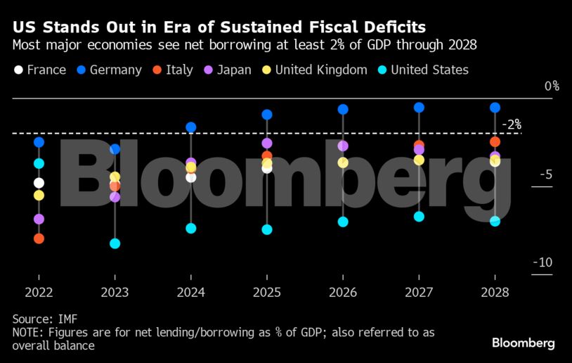 Τα δημοσιονομικά δεν είναι τόσο άσχημα σε άλλα κράτη, αλλά χώρες όπως το Ηνωμένο Βασίλειο, η Ιταλία και η Γαλλία αναμένεται να εμφανίσουν φέτος ελλείμματα μεγαλύτερα από το κανονικό. Η BlackRock προειδοποίησε πρόσφατα πως οι εκλογές στη Βρετανία θα μπορούσαν να οδηγήσουν σε sell-off στην αγορά ομολόγων λόγω της προσπάθειας χρηματοδότησης των υποσχέσεων των πολιτικών για φοροελαφρύνσεις.