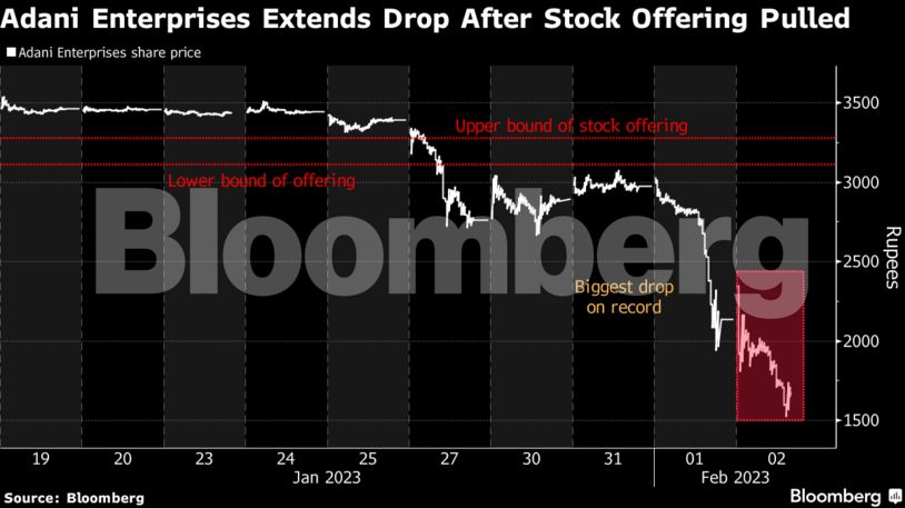 Έχοντας προχωρήσει σε άντληση χρηματοδότησης από Μεσανατολίτες και Ινδούς επενδυτές για την ενίσχυση της πώλησης μετοχικού πακέτου αξίας $2,4 δισ., o όμιλος αναγκάστηκε να αποσύρει την απόφαση αυτή λόγω των κατηγοριών της Hindenburg.