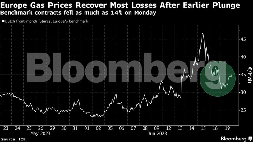 Oι ευρωπαϊκές τιμές του φυσικού αερίου ανέκαμψαν από την απότομη πτώση χθες Δευτέρα, καθώς η αστάθεια που κυριάρχησε στην αγορά αυτόν τον μήνα συνεχίζεται εν μέσω κινδύνων προσφοράς και καύσωνα.