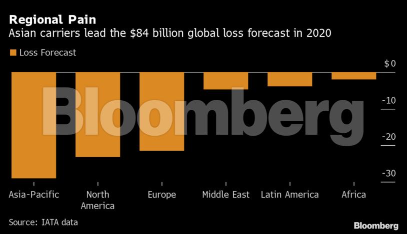 Η περιοχή Ασίας-Ειρηνικού αναμένεται να σημειώσει τις μεγαλύτερες απώλειες φέτος στα 29 δισεκατομμύρια δολάρια, υπολογίζει ο IATA, ενώ ακολουθεί η Βόρεια Αμερική και την Ευρώπη.
