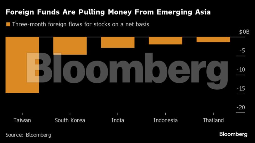 Τα funds έχουν αρχίσει να πωλούν μετοχές των αναπτυσσόμενων ασιατικών αγορών εκτός της κινεζικής, δεδομένων των αυξημένων ανησυχιών όσον αφορά τις γεωπολιτικές εντάσεις, τα υψηλά κόστη δανεισμού αλλά και το ισχυρότερο δολάριο.