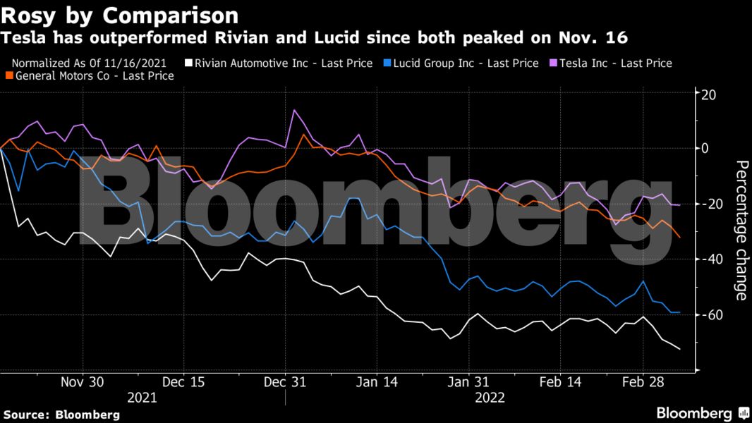 Μάλιστα, το χάσμα που επικρατεί, έγινε διακριτό την περασμένη εβδομάδα, όταν δύο από τις μεγαλύτερες νεοσύστατες εταιρείες ηλεκτρονικών οχημάτων -η Rivian Automotive Inc. και η Lucid Group Inc.- ανακοίνωσαν διακοπές στην εφοδιαστική αλυσίδα, έχοντας ως αποτέλεσμα τις απότομες απώλειες στις μετοχές τους.