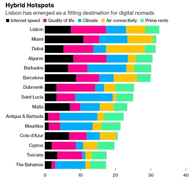 Οι δρόμοι, λοιπόν, οδηγούν στην Πορτογαλία, και ειδικότερα στη Λισαβόνα, η οποία φιγουράρει στην πρώτη θέση των επιλογών για τους υψηλόμισθους ψηφιακούς νομάδες.