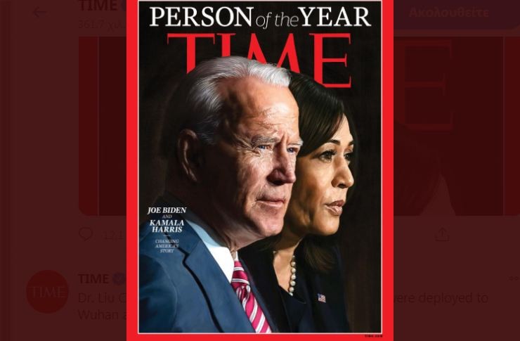 Ο εκλεγμένος πρόεδρος των ΗΠΑ Τζο Μπάιντεν και η εκλεγμένη αντιπρόεδρός του Κάμαλα Χάρις είναι οι «προσωπικότητες της χρονιάς» στο περιοδικό Time.