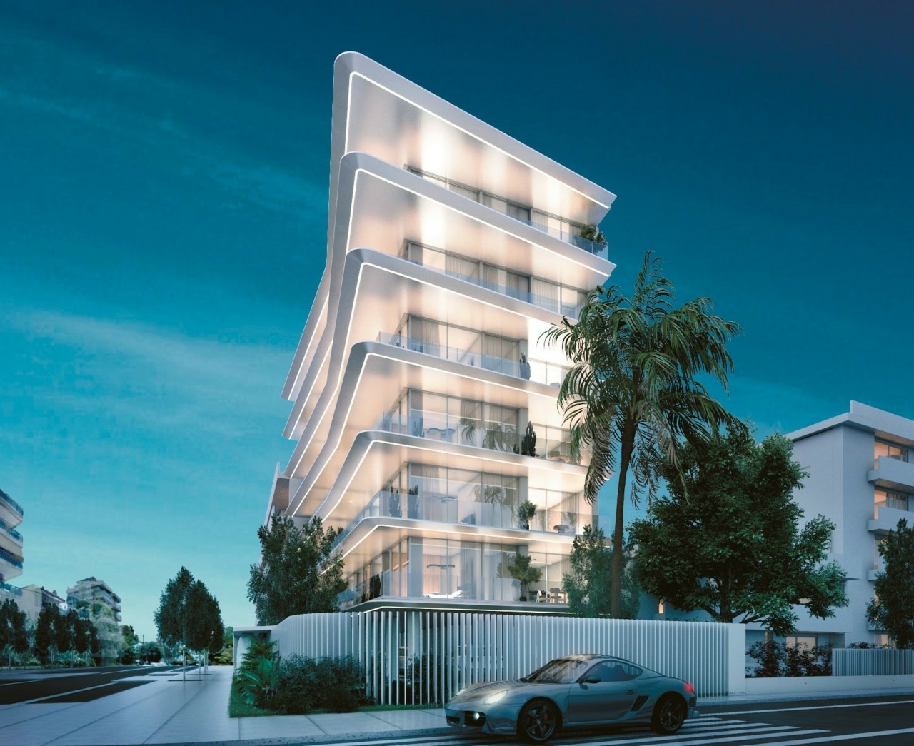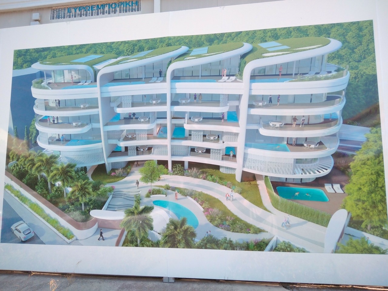 στη λεωφόρο Ποσειδώνος. Πρόκειται για «συγκρότημα πολυτελών διαμερισμάτων με υπαίθριες πισίνες»,