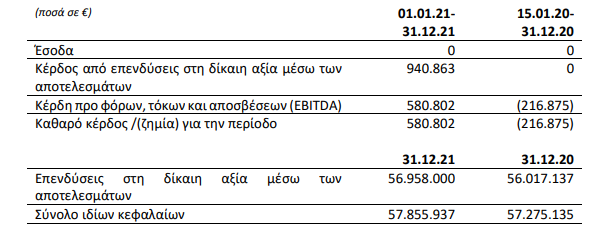 Τα βασικά μεγέθη της Εταιρίας για τη χρήση 2021 παρουσιάζονται στον παρακάτω πίνακα: