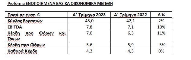 Η εταιρεία IDEAL Holdings ανακοινώνει τα Proforma Βασικά Οικονομικά Μεγέθη του Α’ τριμήνου 2023 τα οποία έχουν ως εξής: