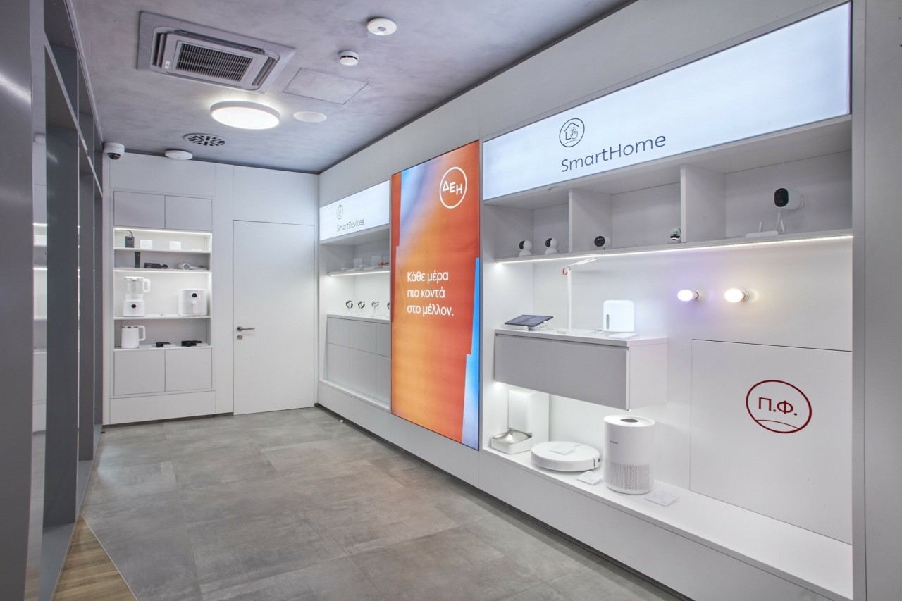 Στον ειδικό χώρο τεχνολογίας στο νέο κατάστημα, οι επισκέπτες μπορούν να βρουν έξυπνες συσκευές και λύσεις smart living για να αυτοματοποιήσουν και να βελτιστοποιήσουν την ποιότητα ζωής τους στο σπίτι.