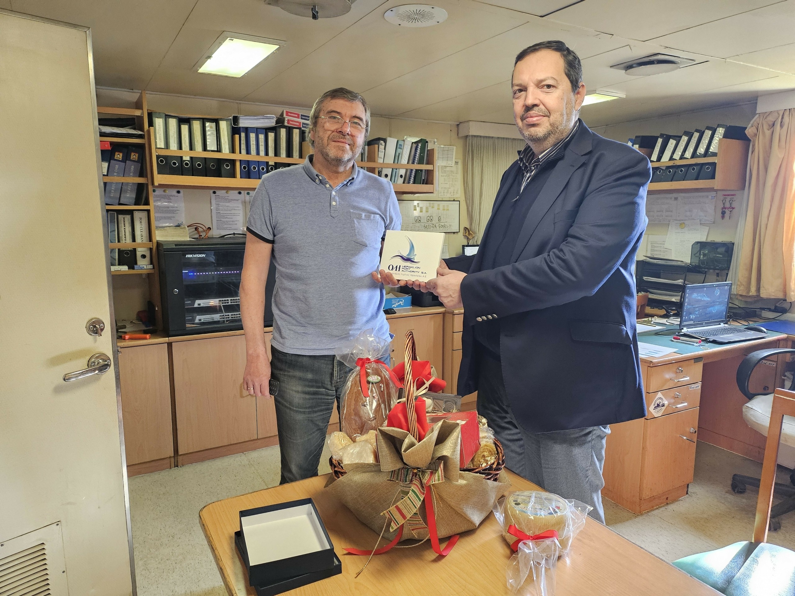 Ο Διευθύνων Σύμβουλος του ΟΛΗ Μηνάς Παπαδάκης, συνοδευόμενος από τον ειδικό Σύμβουλο Μηνά Σεϊμένη, επισκέφτηκαν το πλοίο την ημέρα των Χριστουγέννων προκειμένου να ανταλλάξουν ευχές και δώρα με τον Καπετάνιο Petrov Vadym και τα υπόλοιπα 17 μέλη του πληρώματος.