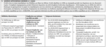 Στο άλλο μεγάλο project, που αφορά στην πώληση του 30% του Διεθνούς Αερολιμένα Αθηνών, όπου κατατέθηκαν δέκα προτάσεις, εκκρεμεί η «υπογραφή Συμφωνίας μεταξύ του Ελληνικού Δημοσίου και των υφιστάμενων μετόχων, σχετικά με σειρά ζητημάτων που τροποποιούν τη συμφωνία μετόχων καθώς και για τυχόν δικαιώματα που θα συνοδεύουν το προς πώληση 30% των μετοχών.