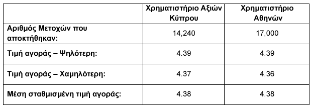 Σύμφωνα με άλλη ανακοίνωση της τράπεζας, η Bank of Cyprus Holdings Public Limited Company (η ‘Εταιρία’) ανακοινώνει πως, στις 30 Νοεμβρίου 2024 το συνολικό εκδοθέν μετοχικό κεφάλαιο της Εταιρίας ανήλθε σε 440,964,310 συνήθεις μετοχές με ονομαστική αξία ύψους €0.10 η κάθε μία, με την κάθε συνήθη μετοχή να φέρει ένα δικαίωμα ψήφου.