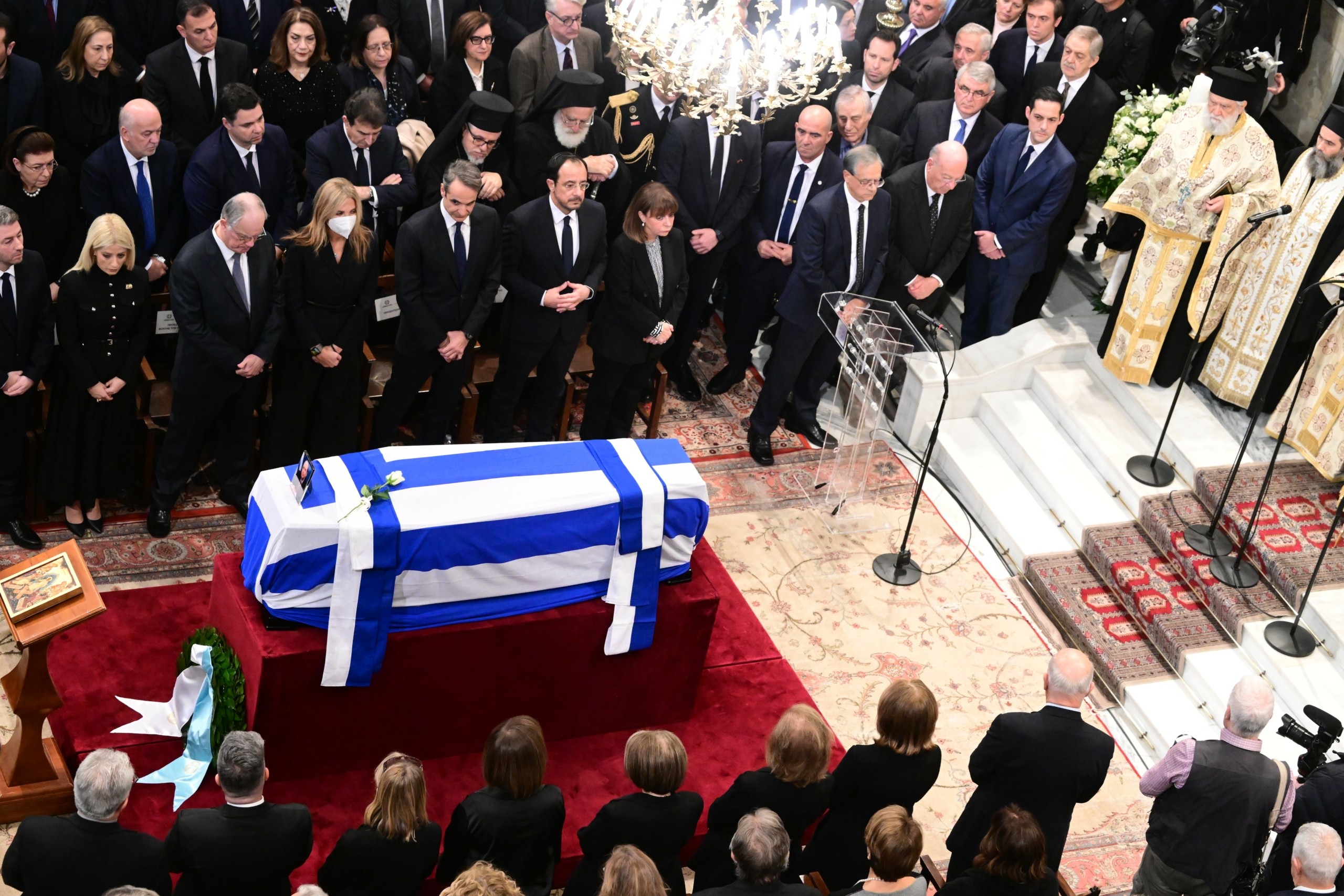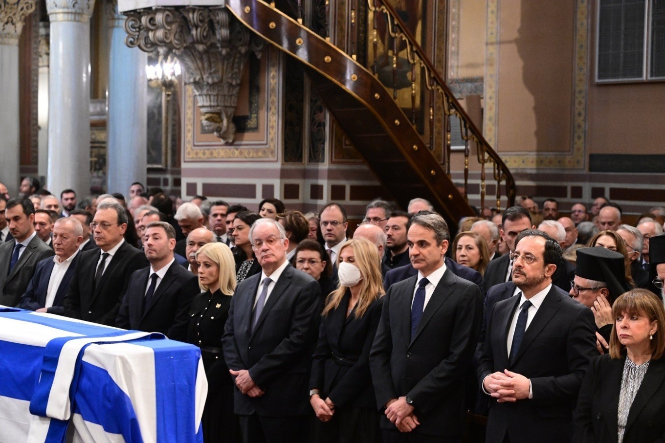 Σύσσωμος ο πολιτικός, διπλωματικός και πανεπιστημιακός κόσμος στο τελευταίο αντίο στον Κώστα Σημίτη, τον πρώην πρωθυπουργό και πρόεδρο του ΠΑΣΟΚ, στη Μητρόπολη Αθηνών.