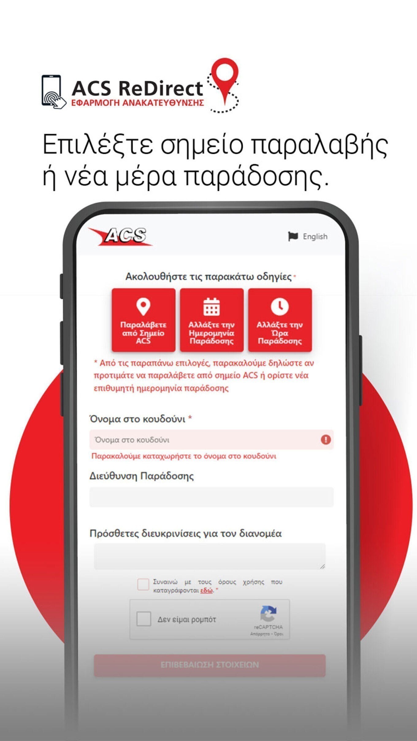 Η διαχείριση των αποστολών γίνεται ακόμα πιο άμεση με το νέο ACS Mobile App, αφού ως χρήστης έχεις την ευκαιρία να επιλέξεις νέα ημέρα παράδοσης από την ήδη καθορισμένη ή ακόμα και να αλλάξεις το σημείο παραλαβής (σε κατάστημα ACS ή ACS Smartpoint). Η ενημέρωση δεν σταματά εκεί, αφού με τη νέα έκδοση της εφαρμογής, μπορείς να μάθεις σε real time οποιοδήποτε θέμα αφορά στο δίκτυο καταστημάτων της ACS, σε όλη την Ελλάδα.