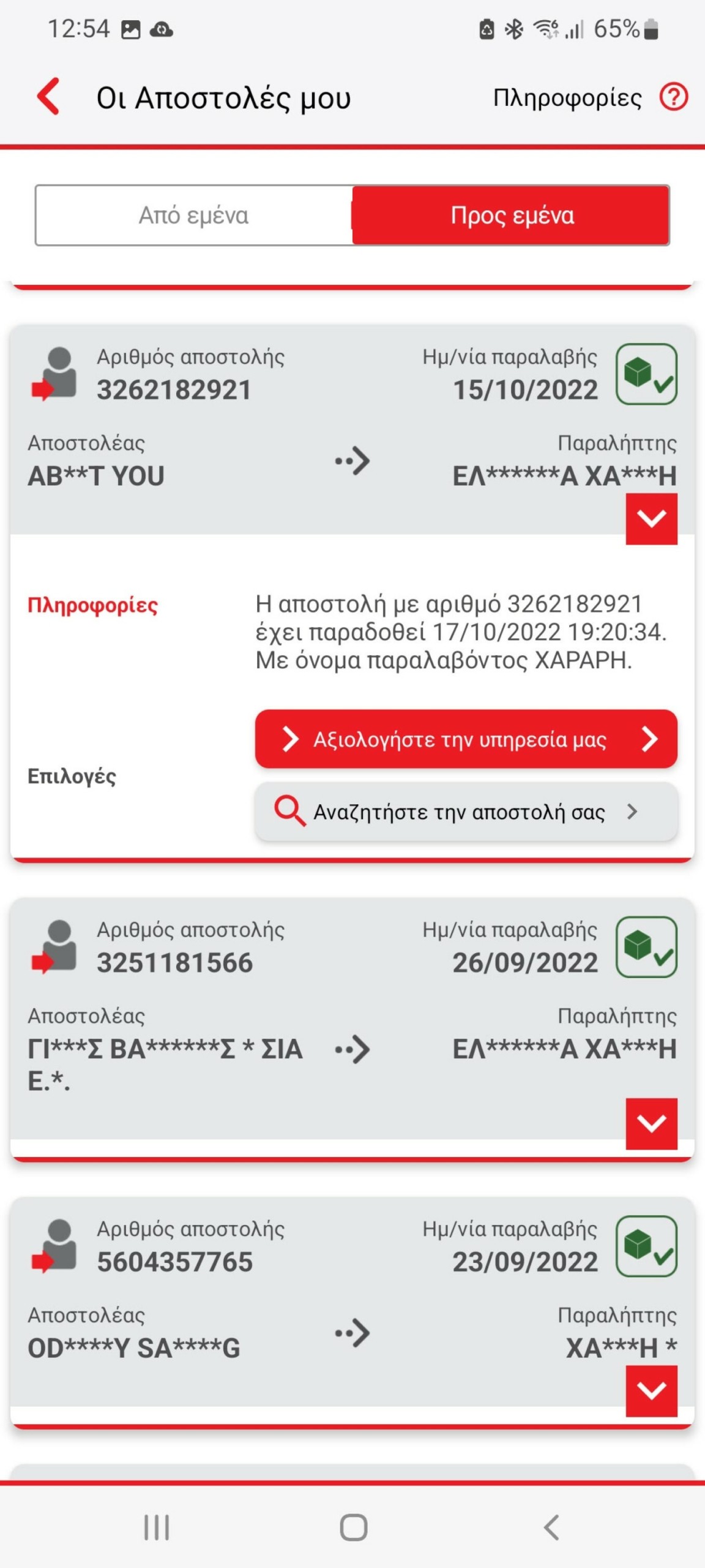 Με τη νέα έκδοση της εφαρμογής, έχεις ακόμα περισσότερες δυνατότητες στα χέρια σου. Συγκεκριμένα, με το νέο feature «e-Κλήση Courier», ως πελάτης έχεις τη δυνατότητα να καλέσεις τον courier από το κοντινότερο κατάστημα, ώστε να παραλάβει την αποστολή από το χώρο σου. Οι ψηφιακές καινοτομίες, όμως, δεν σταματούν εκεί.