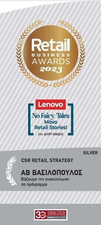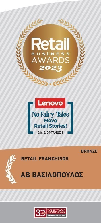 Για τις πρωτοποριακές ενέργειές της όσον αφορά στα προϊόντα ιδιωτικής ετικέτας, την ανακύκλωση και το δίκτυο Franchising διακρίθηκε η ΑΒ Βασιλόπουλος στον θεσμό Retail Business Awards 2023, με τρία βραβεία -ένα gold, ένα silver και ένα bronze- στις κατηγορίες «Private Label», «CSR Retail Strategy» και «Retail Franchisor of the Year», αντίστοιχα.