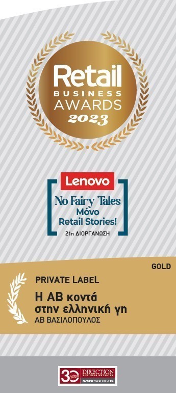 Με το Gold βραβείο, για δεύτερη συνεχόμενη χρονιά, ξεχώρισε η σειρά ελληνικών προϊόντων ιδιωτικής ετικέτας «Η ΑΒ κοντά στην ελληνική γη», που έχει δημιουργηθεί από το 2004, σε μια προσπάθεια της ΑΒ Βασιλόπουλος να στηρίξει έμπρακτα τους μικρούς Έλληνες παραγωγούς, να προσφέρει ανάσα στην ελληνική οικονομία και να αναδείξει τον πλούτο και την προστιθέμενη αξία των ελληνικών προϊόντων.
