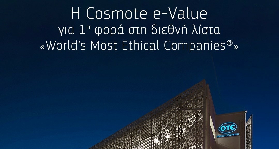 Στη διεθνή λίστα World’s Most Ethical Companies® του Ethisphere Institute συμπεριλαμβάνεται η Cosmote e-Value για το 2024, ως αναγνώριση των επιδόσεων και της δέσμευσής της στην επιχειρηματική ηθική, συμμόρφωση και ακεραιότητα. Η Cosmote E-Value αποτελεί τη μοναδική εταιρεία στην Ελλάδα και μία από τις πέντε εταιρείες παροχής ολοκληρωμένων υπηρεσιών Contact Center στον κόσμο, που συμπεριλαμβάνονται στη φετινή λίστα του Ινστιτούτου. Για το 2024, η λίστα περιλαμβάνει 136 οργανισμούς από 20 χώρες και 44 κλάδους της οικονομίας.