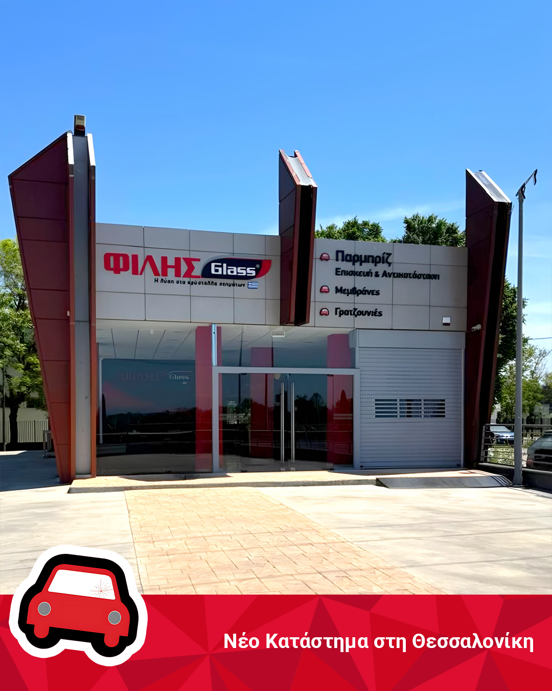 Η ΦΙΛΗΣGlass®, σταθερός συνεργάτης της ασφαλιστικής αγοράς και σημείο αναφοράς στον τομέα των κρυστάλλων αυτοκινήτου, συνεχίζει τη δυναμική της ανάπτυξη με τη λειτουργία νέου υποκαταστήματος στη Θεσσαλονίκη, στη Λεωφόρο Γεωργικής Σχολής 119, Πράσινα Φανάρια – Πυλαία, δίπλα στο Αεροδρόμιο Μακεδονίας.