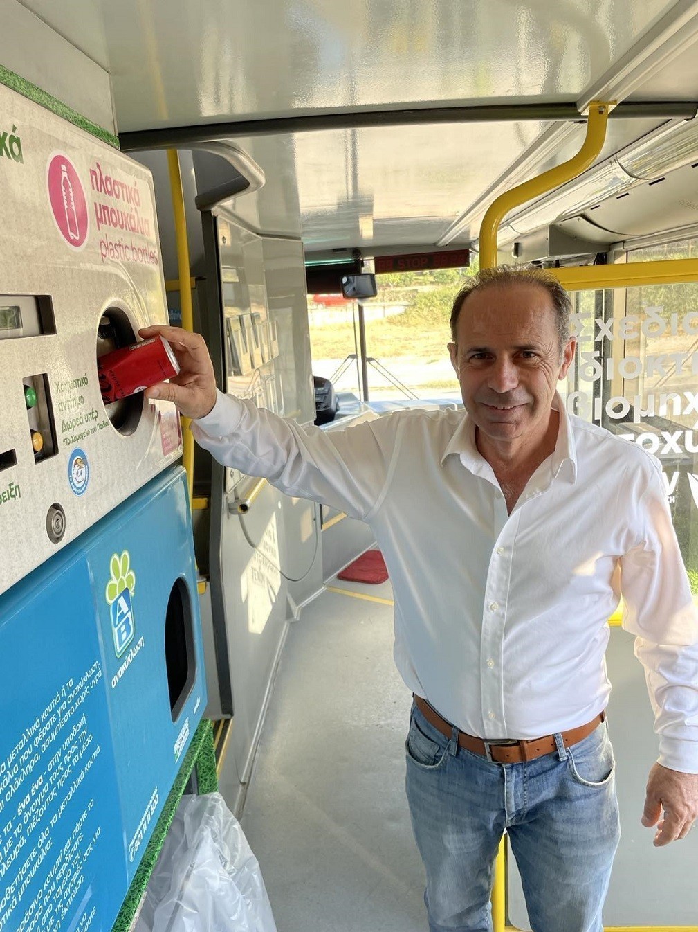 Επιπλέον, στο 1ο επίπεδο του λεωφορείου μπορούν ανακυκλώνουν πλαστικές και μεταλλικές συσκευασίες στο υπερσύγχρονο μηχάνημα ανταποδοτικής ανακύκλωσης, συνειδητοποιώντας με τον καλύτερο τρόπο τα οφέλη της ανακύκλωσης.