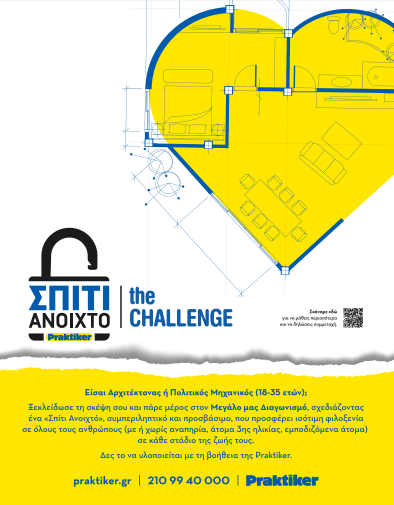 Η Praktiker Hellas, το No. 1 ελληνικό δίκτυο καταστημάτων Home Improvement & DIY, στο πλαίσιο του προγράμματος Συμπερίληψης και Προσβασιμότητας «Σπίτι Ανοιχτό», ανακοινώνει τον καινοτόμο Αρχιτεκτονικό Διαγωνισμό «Σπίτι Ανοιχτό» – The Challenge!