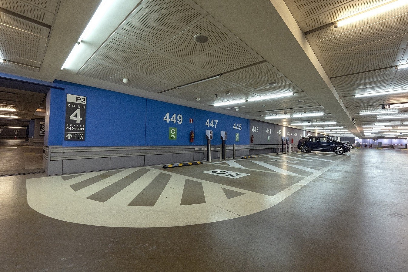 Οι συγκεκριμένοι σταθμοί φόρτισης ηλεκτρικών οχημάτων εναλλασσόμενου ρεύματος (AC), ονομαστικής ισχύος 22 kW ο καθένας, έχουν τοποθετηθεί στο δεύτερο επίπεδο (P2) του υπόγειου χώρου στάθμευσης του Μεγάρου Μουσικής Αθηνών.