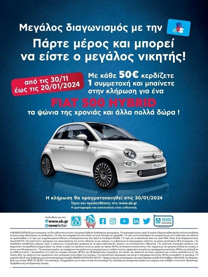 - 30 τυχεροί, 5.000 πόντους στην κάρτα τους AB Plus (που ισούνται με 150€)