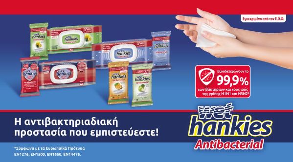 Wet Hankies Antibacterial… η Νο1 αντιβακτηριδιακή προστασία που εμπιστεύεστε!