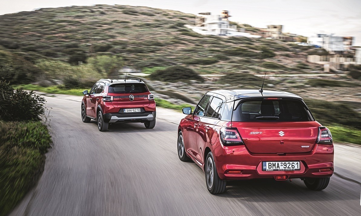 Παρά τη γαλλική ρύθμιση στο set up, το C3 δεν χάνει την κατευθυντικότητά του στη στροφή και η προοδευτική αντίδραση αποτελεί τον κανόνα. Ο όρος της ομοιογένειας είναι εκείνος που σου έρχεται στο μυαλό, απέναντι στο σαφώς πιο «παιχνιδιάρικο» οδικό προφίλ του Swift. Στην πόλη, θα εκτιμήσεις τον μικρό κύκλο στροφής και των δύο αυτοκινήτων που συμβάλλει τα μέγιστα στην ευελιξία, ενώ σε ό,τι αφορά τα φρένα, αυτά έχουν ξεκάθαρο νικητή το C3.