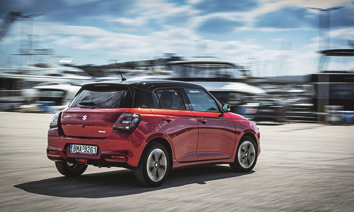 Στην αντίπερα όχθη διακρίνεις την εμμονή της Suzuki σε ένα μαζεμένων διαστάσεων supermini με κλασικές αναλογίες αλλά πλήρη εκμοντερνισμό, κυρίως στο τραβηγμένο εμπρός τμήμα. Το Swift ερμηνεύει το «σεμνά και ταπεινά», δεν βροντοφωνάζει την παρουσία του, επενδύει εκ νέου στις θεμελιακές αρχές της εταιρείας που το θέλουν να πραγματοποιεί αγόγγυστα και αξιόπιστα τη «δουλειά», χωρίς παρεκκλίσεις από αυτό που αποκαλούμε «αυτοκίνητο πόλης».