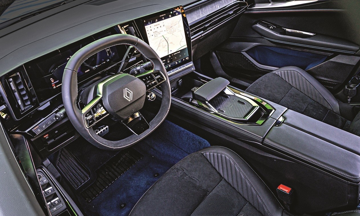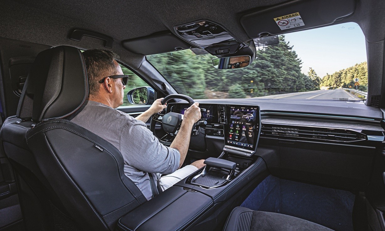 Η πρώτη εντύπωση από το εσωτερικό δεν είναι ανάλογη με αυτή της εξωτερικής σχεδίασης. Ειδικά αν έχεις προηγουμένως οδηγήσει μοντέλα όπως το Austral ή το Symbioz, ή ακόμα και το ανανεωμένο Captur. Η βασική αρχιτεκτονική είναι παρόμοια, με τις δύο καθιερωμένες πλέον οθόνες, μία για τον πίνακα οργάνων των 12,3” και μία σε κάθετη διάταξη με διαγώνιο 12” και οδηγοκεντρικό προσανατολισμό.