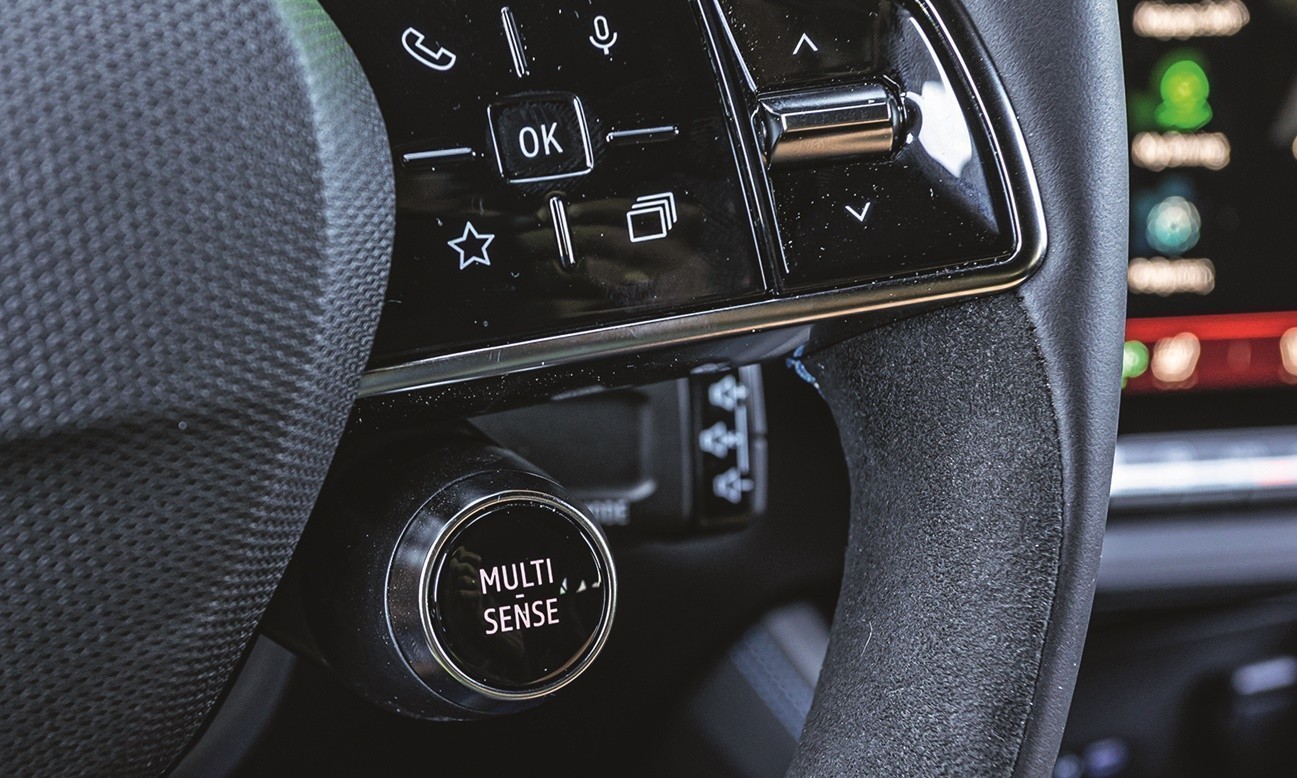 Οπως προανέφερα, το πρόγραμμα sport (η επιλογή τους γίνεται από το πολύ βολικό κουμπί multi-sense στην κάτω δεξιά άκρη του τμονιού) «σφίγγει» όλα τα βασικά χειριστήρια. Και ναι μεν η αμεσότητα στο γκάζι είναι ευπρόσδεκτη, όπως και η γρήγορη απόκριση του κιβωτίου, όμως το τιμόνι κατά την άποψή μου βαραίνει χωρίς ουσιαστικό αντίκρισμα σε πληροφορία.