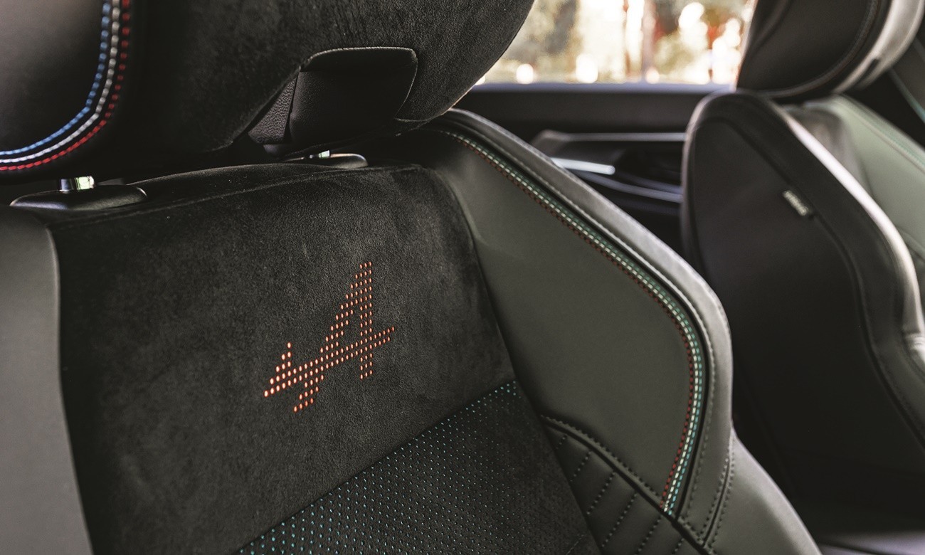Ειδικά για το πρώτο φροντίζουν αυτά τα εξαιρετικά μπάκετ καθίσματα, αποκλειστικά για το Rafale, με επένδυση από ανακυκλωμένη Alcantara, τα οποία μάλιστα εφοδιάζονται με το φωτιζόμενο σήμα της Alpine που μπορεί να αλλάξει χρωματισμό ανάλογα με την επιλογή που έχει γίνει στον εσωτερικό φωτισμό.