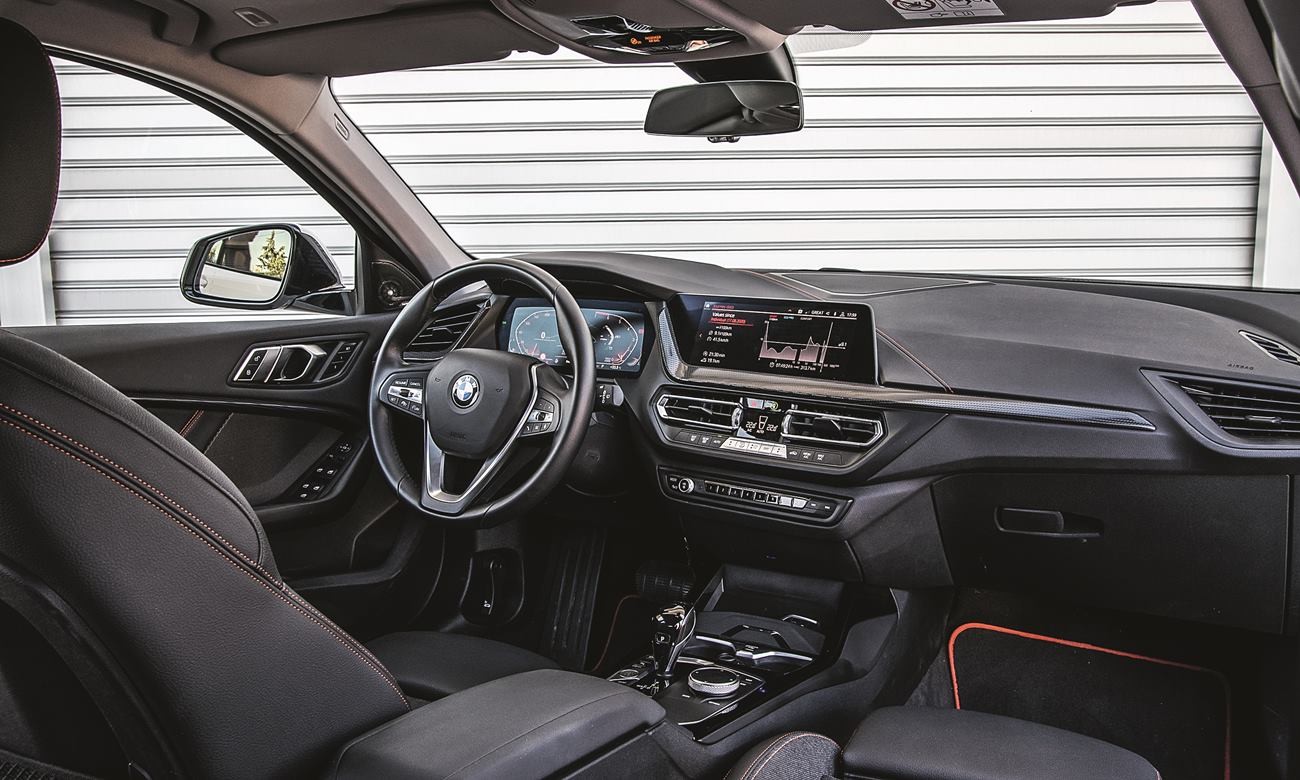 Η 118i που είχαμε στη διάθεσή μας ήταν εφοδιασμένη με την κορυφαία έκδοση 7.0 του λειτουργικού συστήματος πολυμέσων iDrive, με ενσωματωμένη τεχνητή νοημοσύνη και εξελιγμένο σύστημα φωνητικών εντολών με λειτουργία προσωπικού βοηθού. Το MBUX υπερέχει ελαφρά στην ποιότητα των γραφικών, αλλά το iDriveOS 7.0 διαθέτει φυσικούς διακόπτες για όλες τις λειτουργίες, ενώ το κλασικό πιεζοπεριστροφικό χειριστήριο της BMW στην κεντρική κονσόλα είναι πολύ πιο εύχρηστο από το touchpad που χρησιμοποιεί η Mercedes-Benz. Από την άλλη, ο πλήρως ψηφιακός πίνακας ενώ αρχικά εντυπωσιάζει με την εικόνα του, ενσωματώνει αχρείαστα μεγάλο όγκο πληροφόρησης. Ο σαφώς πιο απλός του Α3 αρχικά μοιάζει πιο φτωχός, αλλά στην ουσία του είναι πιο εύχρηστος, όπως κάθε πιο απλό πράγμα σε αυτή τη ζωή τελικά.