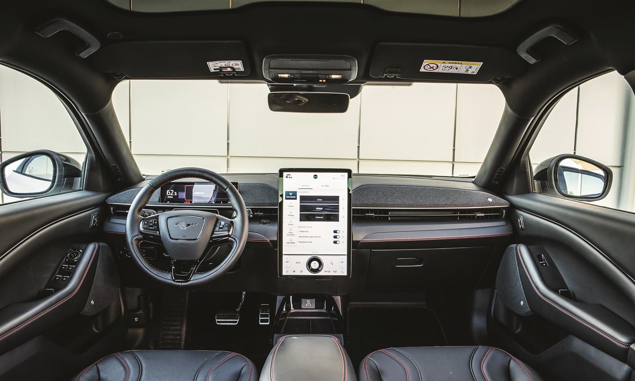 Παρόλο που η Mach-E είναι καλοφτιαγμένη, δεν μεταφέρει μια αντίστοιχη αίσθηση θαλπωρής ούτε σε κάνει να νιώθεις ένα με το αυτοκίνητο. Η μινιμαλιστική και μεταμοντέρνα αισθητική δίνει ένα κάπως αποστειρωμένο και απρόσωπο ύφος, ενώ είναι σίγουρο πως η πλειονότητα όσων επιλέξουν μια Mustang θα ήταν πρόθυμοι να ανταλλάξουν μια θέση οδήγησης που είναι τόσο ξεκούραστη σαν να φτιάχτηκε για ατελείωτα roadtrip στη Route 66 για να κερδίσουν την αίσθηση ενός καλού μπάκετ που θα αγκάλιαζε σφιχτά το σώμα σε μια βόλτα στις δαντελωτές διαδρομές της Δυτικής Ακτής.