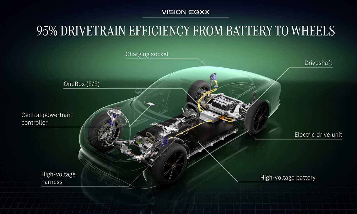 Σύμφωνα με την Mercedes-Benz θα έχει κατανάλωση ενέργειας μικρότερη από 10 kWh/100 km. Για να επιτύχουν αυξημένη απόδοση χωρίς να μεγαλώσουν την μπαταρία, οι μηχανικοί αύξησαν την περιεκτικότητά της σε πυρίτιο, ενώ επανασχεδιάστηκε για να χωράει περισσότερες κυψέλες μειώνοντας παράλληλα το συνολικό βάρος.