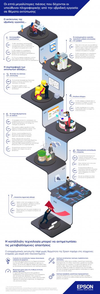 Οι επιχειρήσεις, σε όποιον τομέα κι αν δραστηριοποιούνται, παρατηρούν διαφοροποιήσεις σε ένα κομμάτι των εργασιών τους, δηλαδή στις διαδικασίες εκτύπωσης, που διαδραματίζει καίριο ρόλο στη γενικότερη λειτουργία τους. Υψηλότερα κόστη, διευρυμένες τεχνολογικές απαιτήσεις και αυξομειώσεις όγκου εργασιών είναι μόνο μερικά από τα αποτελέσματα που έφεραν τα ευέλικτα και υβριδικά μοντέλα εργασίας που προέκυψαν λόγω της πανδημίας.