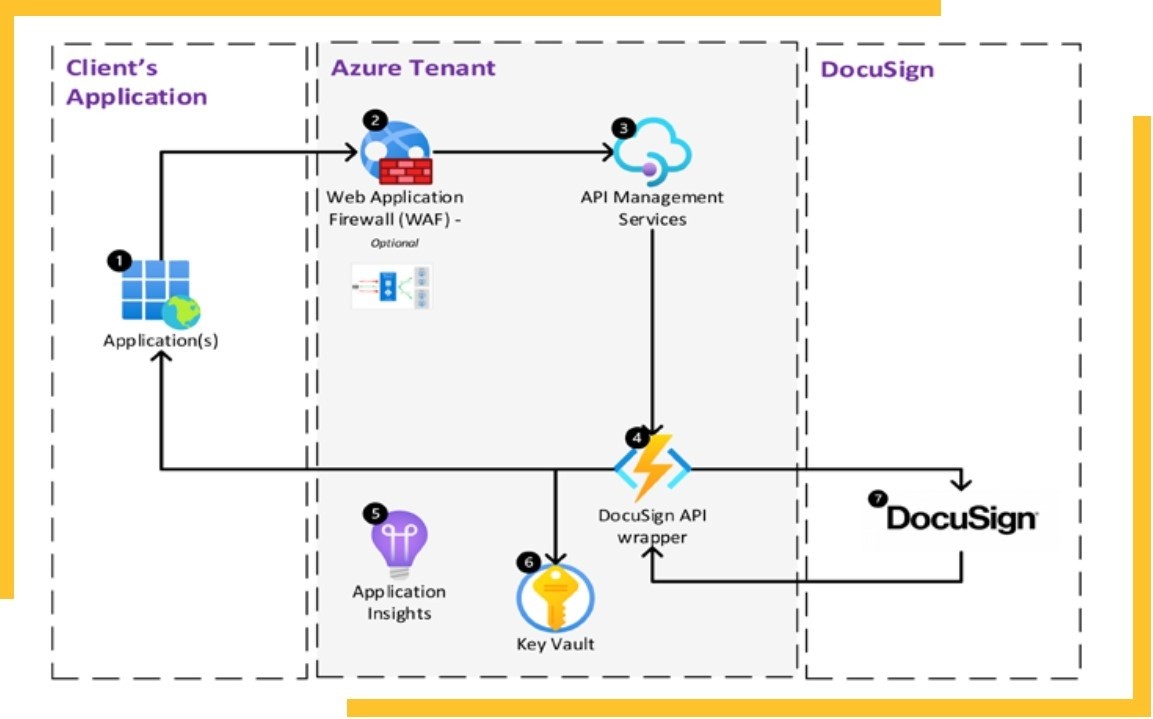 Η εφαρμογή με την χρήση Web app, αναλαμβάνει να συνδέσει τη λύση της DocuSign με τις υπάρχουσες εφαρμογές που χρησιμοποιεί μία επιχείρηση, είτε πρόκειται για εφαρμογές ERP, CRM (όπως για παράδειγμα το Microsoft Dynamics), ένα Intranet, μία εφαρμογή collaboration όπως το SharePoint της Microsoft, είτε λύσεις επικοινωνίας και συνεργασίας όπως το Teams.