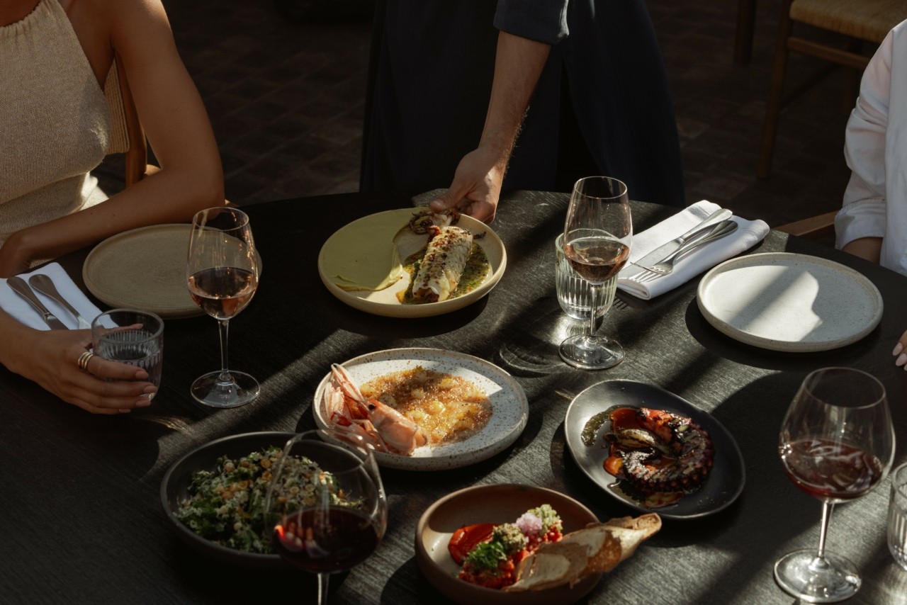 Η ανοιχτή κουζίνα, το μπαρ και το σαλόνι του Nōema έχουν άμεση οπτική πρόσβαση από την κλειστή αυλή, δημιουργώντας την αίσθηση της ανεμπόδιστης κίνησης μεταξύ των χώρων. Άλλωστε, η αυλή είναι η καρδιά κάθε σπιτιού των Κυκλάδων, ένας μυστικός προστατευμένος κήπος που επιτρέπει στην οικογένεια και τους φίλους της να ξεκουραστούν να ανασυγκροτηθούν, να γελάσουν και να βρεθούν πάλι κοντά. Αυτό ήταν το ζητούμενο από την αρχή, οι επισκέπτες του Nōema να απολαμβάνουν καθημερινά μια γιορτή απλότητας, γενναιοδωρίας και αυθορμητισμού, όπου ο χρόνος σταματάει και το «μαζί» είναι αυτό που πραγματικά έχει σημασία. Αν τα καταφέρνει; Ναι, απολύτως. Στα τραπέζια, που διπλώνουν και τριπλώνουν, οι παρέες είναι γελαστές, αν και όχι φωνακλάδικες, οι ηλικίες μπερδεύονται, όπως και οι φυλές, οι προελεύσεις και οι κοινωνικές τάξεις.