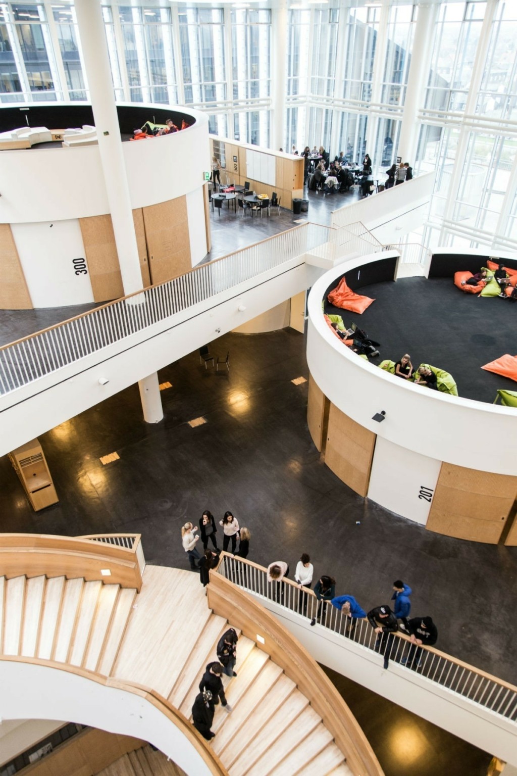 Το Woodleigh School έξω από τη Μελβούρνη έχει καταργήσει τις αίθουσες από το 2016, εφαρμόζοντας μάθηση βάσει έργου, με παιδιά από διαφορετικές ηλικίες να συνεργάζονται σε θεματικές ενότητες. Αντίστοιχα, το σχολείο Ørestad Gymnasium στην Κοπεγχάγη της Δανίας μοιάζει με σπειροειδή βιβλιοθήκη, όπου όλα είναι ορατά. Ακόμα και οι εξετάσεις γίνονται σε ανοιχτούς χώρους.
