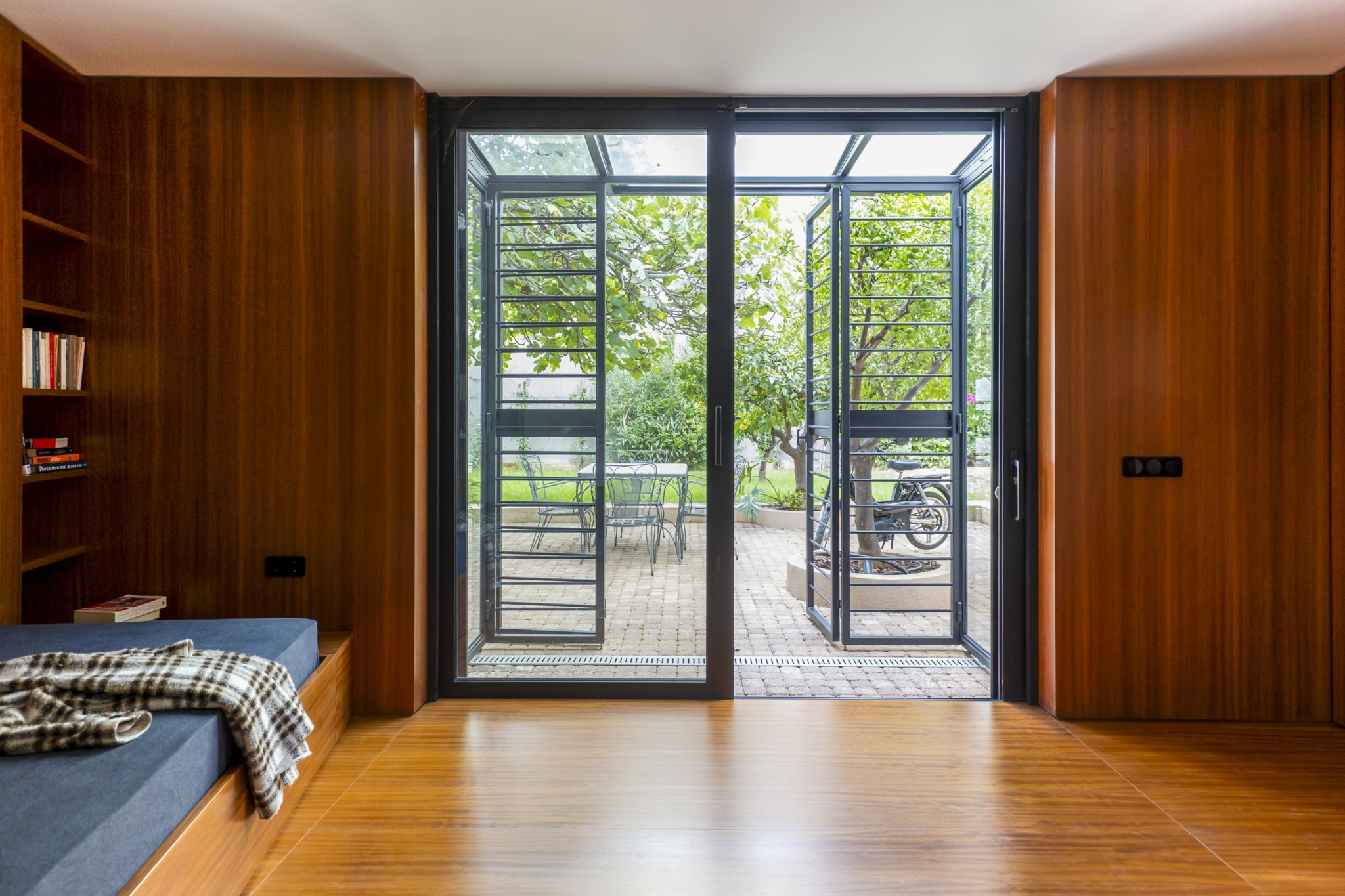 “Eίναι ένα κτίσμα 25 τετραγωνικά μέτρα σε κήπο σε ένα σπίτι με κήπο το οποίο χρησιμοποιούσαν μέσα στα χρόνια σαν αποθηκευτικό χώρο και το οποίο έπειτα από επιθυμία των πελατών μας το ανακαινίσαμε διατηρώντας την έκταση του χώρου (το κέλυφος). Ανήκει στον χώρο του κήπου μιας μονοκατοικίας του 1960 στη Γλυφάδα σαν bungalow η οποία θα μπορούσε να αποτελέσει και αρχιτεκτονικό δείγμα του μοντερνισμού. Θέλαμε αυτό το σπιτάκι να λειτουργεί αυτόνομα από το άλλο σπίτι. Να μπορεί κάποιος να κοιμηθεί, να δουλέψει, να φιλοξενηθεί. Να απομονώνονται εκεί τα μέλη της οικογενείας” μας είπε η Κατερίνα Αποστόλου του γραφείου AKA architects.