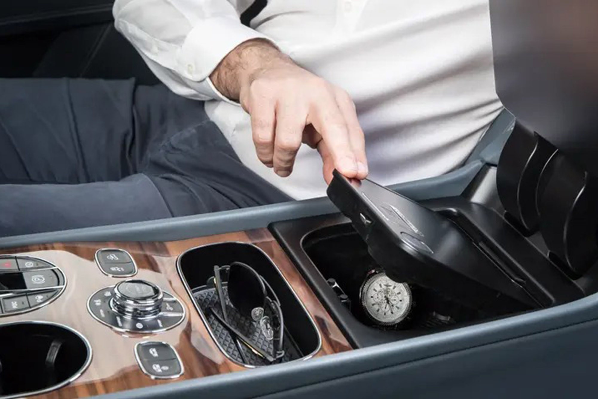 Μένουμε στην Bentley και το SUV Bentayga, για το πιο gizmo (όσο και απλό) σε στυλ James Bond αξεσουάρ στη λίστα μας. Ενα σημείο αποθήκευσης με βιομετρική ασφάλεια/άνοιγμα ανάμεσα στα μπροστινά καθίσματα. Βέβαια η μαγεία χάνεται όταν συνειδητοποιήσετε ότι είναι η ίδια τεχνολογία που ξεκλειδώνει το τηλέφωνό σας. Ωστόσο, το αξεσουάρ με το φινίρισμα της θήκης από χυτό αλουμίνιο υψηλής πίεσης σε μαύρο χρώμα κοστίζει 2.600 ευρώ.