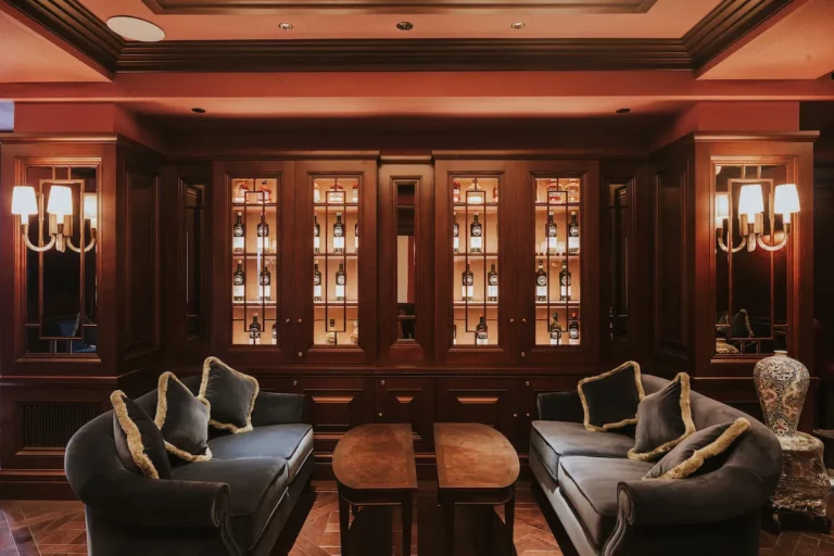 Με ένα μικρό ασανσέρ από μαόνι ανεβαίνεις στον επάνω όροφο και διασχίζεις έναν στενό διάδρομο. Στην υποδοχή, σε χαιρετούν ευγενικά, σου προσφέρουν μια vintage μακριά γούνα ή ένα μάλλινο παλτό σε περίπτωση που θέλεις να βγεις στην βεράντα του cigar bar και στη συνέχεια σού ζητούν να παραδώσεις το κινητό και το τοποθετούν σε ένα παλιού στυλ χρηματοκιβώτιο.