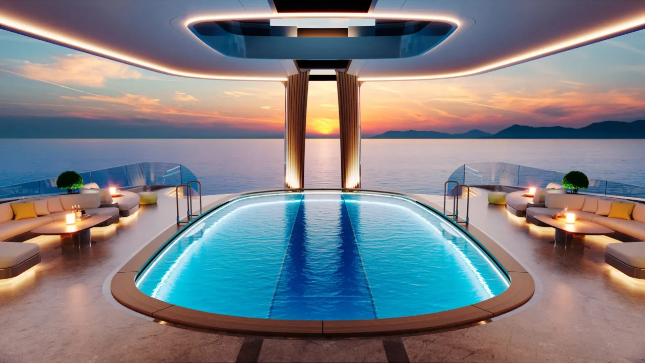 Με μήκος 110 μέτρα, το εξωπραγματικό αυτό σκάφος είναι εξοπλισμένο με γκαράζ-πλατφόρμα προσγείωσης για επιβατικό drone, υποβρύχιο και moon pool (θάλαμο που επιτρέπει την πρόσβαση στη θάλασσα από το εσωτερικό του σκάφους).