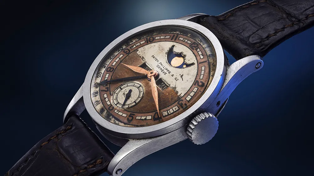 Σύμφωνα με τον οίκο δημοπρασιών, χρειάστηκαν τρία χρόνια ερευνών για να επαληθευτεί η προέλευση του ρολογιού με το εντυπωσιακό καντράν με τους τρεις δείκτες, το πλήρες ημερολόγιο και τις ενδείξεις φάσεων σελήνης.