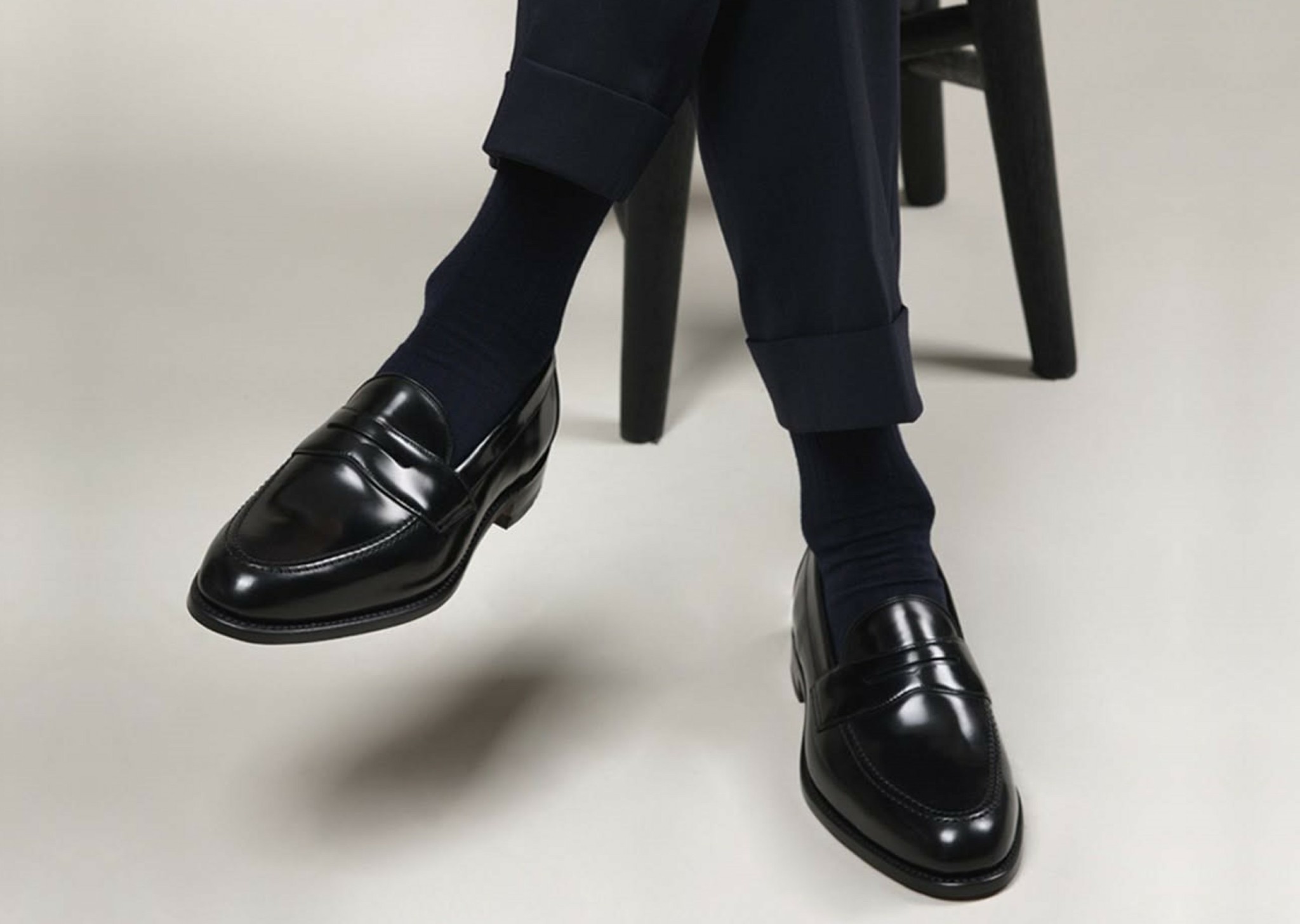 Αυτό το παπούτσι δεν κάνει θόρυβο. Κάνει δουλειά. Και λέει: “Είμαι κομψός χωρίς να κουνήσω το μικρό μου δάχτυλο”. Το μαύρο penny loafer είναι ο Joker της γκαρνταρόμπας. Φοριέται με navy blue κοστούμι, λευκό παντελόνι, βερμούδα, τζιν. Αν θες να το παίξεις Italian, invisible sock. Αν θες να κάνεις twist, κάλτσα navy, γκρι, ή ακόμα και λευκή τύπου Michael Jackson -με τη σωστή υφή (τύπου Bresciani). Όχι αθλητικές κάλτσες από το super market, σε παρακαλώ.